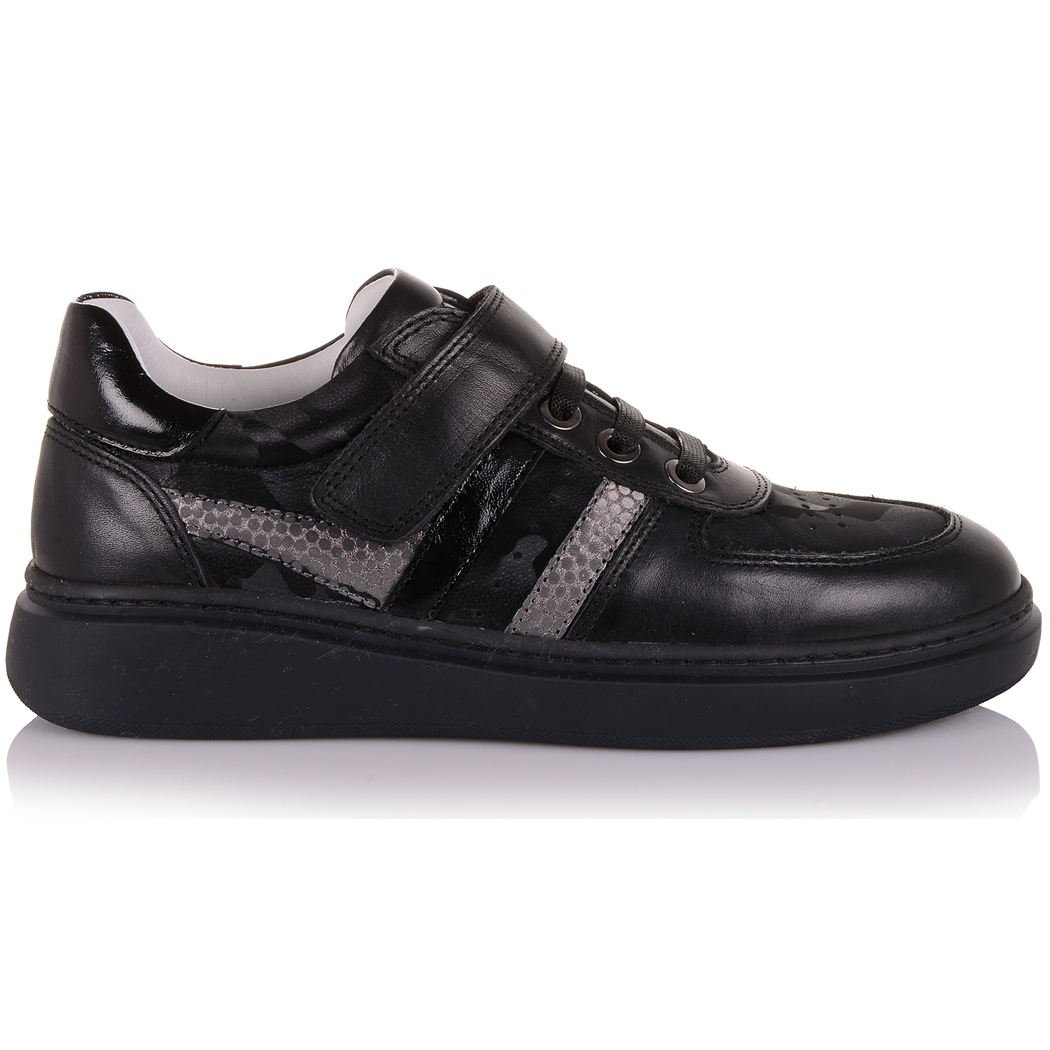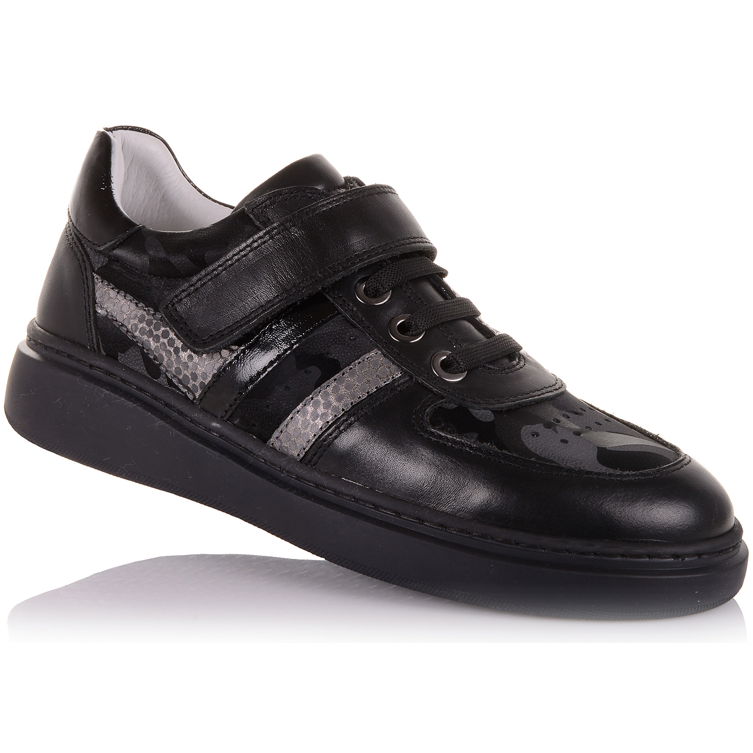 Великий вибір дитячого взуття прекрасно доповнить повсякденний прогулянковий костюм і чудово завершить святковий образ. Взуття в школу виконано з ексклюзивної шкіри в поєднанні з нубуком. Шкіряна устілка з супінатором і твердий задник забезпечують фізіологічно правильне положення ніжки, а зручна фіксація на липучку дозволить вибрати взуття на ногу різної повноти і висоти зводу. Анатомічна зносостійка підошва з термокаучука і антишокова вставками, дуже м'яка і амортизує, забезпечуючи комфортну ходу.