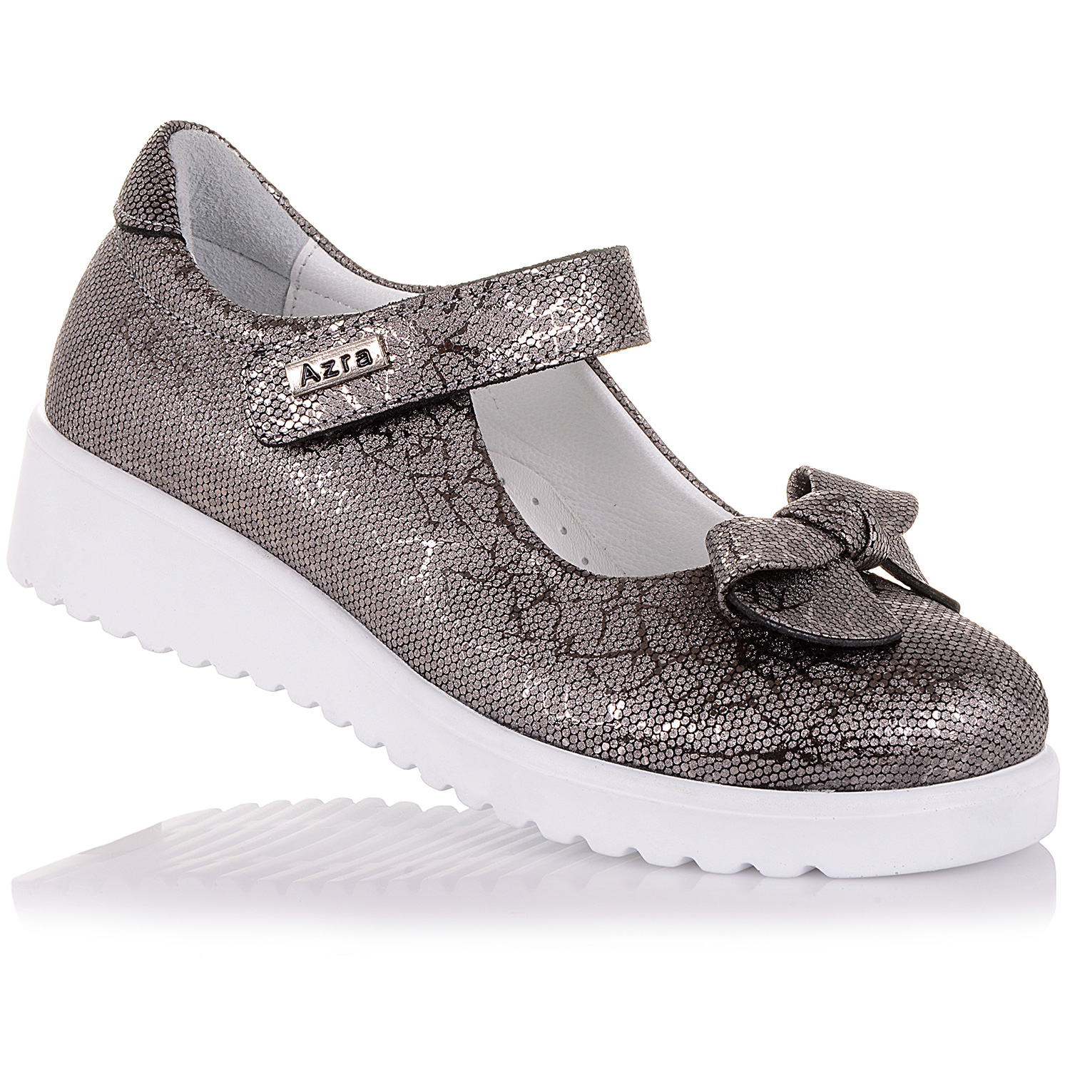 Стильний дизайн і максимальну зручність у використанні поєднує в собі шкільне взуття для дівчаток. Верх моделі виготовлений з нубуку, внутрішня частина і устілка - з м'якої натуральної шкіри. Ось чому до взуття так приємно торкатися. Помірно жорсткий задник попереджає деформування гомілковостопного суглоба і фіксує кістку п'яти в правильному положенні. Біла лита підошва з термоеластопласту не ускладнює крок, захищає стопу від пошкоджень. Для підтримки зводу стопи в анатомічно правильному і комфортному становищі передбачена шкіряна ортопедична устілка з м'яким супінатором і системою виведення вологи. За допомогою ремінця з липучкою взуття для дітей легко зафіксувати на ніжках.