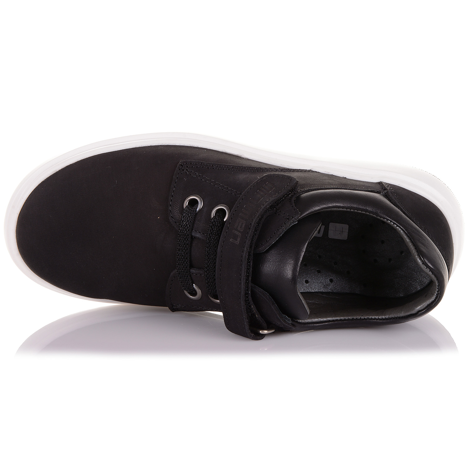 Нубукові ортопедичні мокасини чорного кольору з білою підошвою підійдуть практично під будь-який гардероб на сезон весна-осінь. Нога фіксується липучкою і гумками. Внутрішня м'яка шкіряна устілка з супінатором і твердий задник забезпечують фізіологічно правильне положення ніжки. Підошва зносостійка з термокаучука, забезпечує амортизацію, комфортну ходу і хороше зчеплення з твердою поверхнею. Взуття такої якості і дизайну приковує погляди!