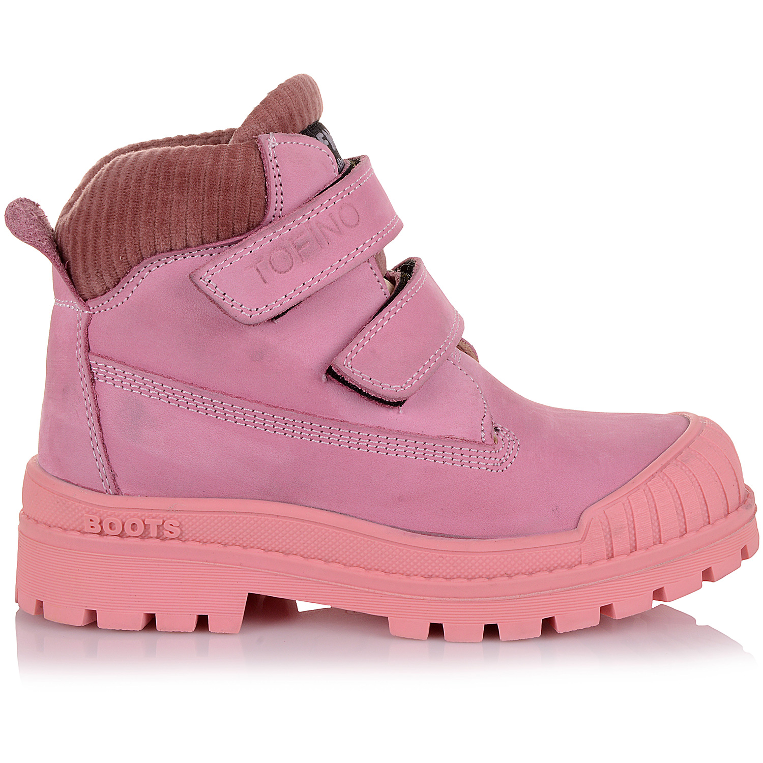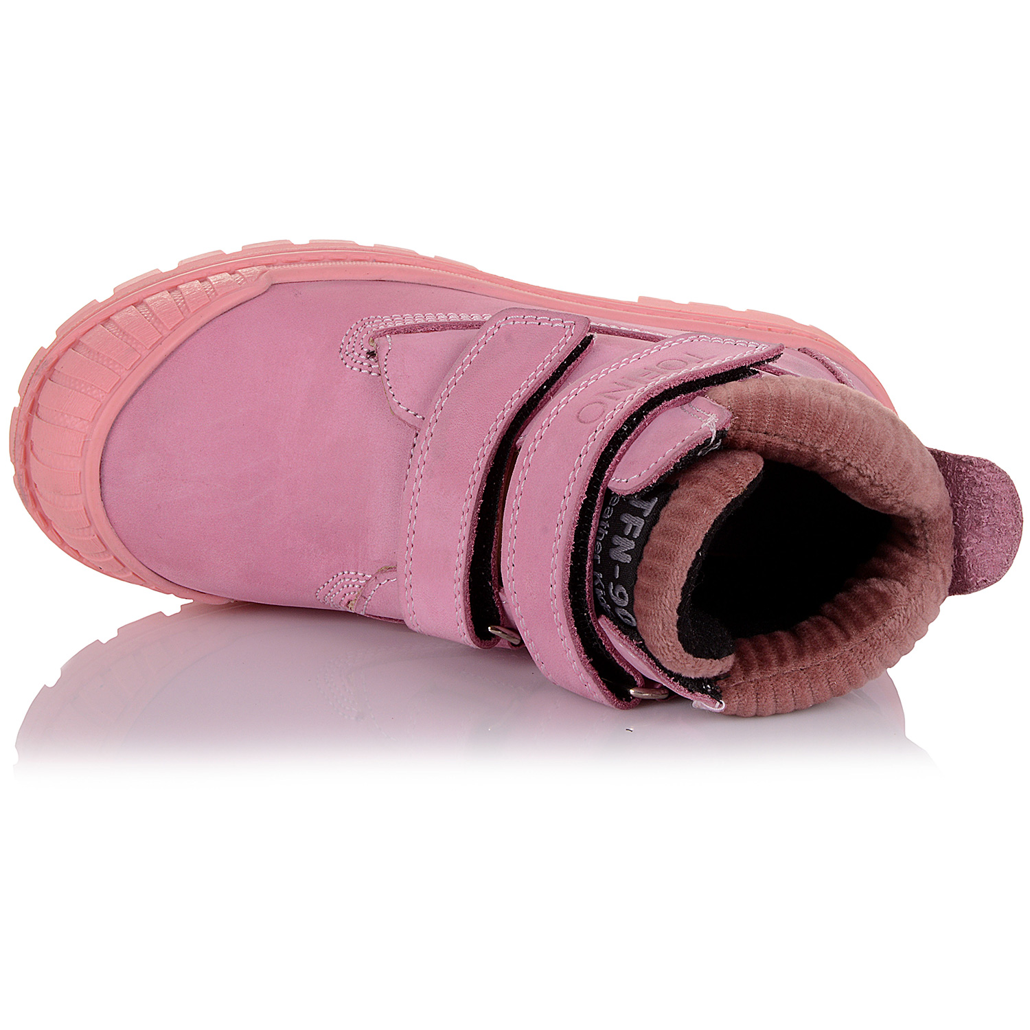 Демісезонне взуття з нубуку виглядають вишукано та елегантно. Оздоблення флісом забезпечує тепло та сухість усередині взуття за холодної погоди (устілка з вовни). Ортопедична підошва зі скошеним підбором Томаса рівномірно розподіляє навантаження по всій стопі, підтримуючи її середню частину. Жорсткий задник фіксує п'яту і гомілковостоп, а також запобігає появі розтягувань та вивихів. За допомогою двох липучок взуття для дітей можна зафіксувати на ногах.