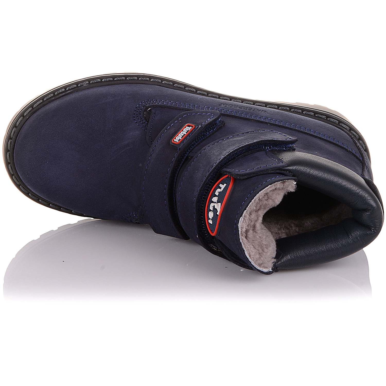 Зимове взуття виглядає стильно та сучасно. Взуття для дітей виготовлене з натурального нубуку. Внутрішня частина взуття та устілка виготовлені з натурального хутра. Завдяки цьому в черевиках тепло та сухо. А повітропроникні властивості хутра дозволяють ніжкам «дихати». Підошва з термоеластопласту забезпечує гарне зчеплення з твердою поверхнею та знижує ризик отримання травм у снігову погоду та під час ожеледиці. Завдяки липучкам взуття швидко та надійно фіксується на нозі.