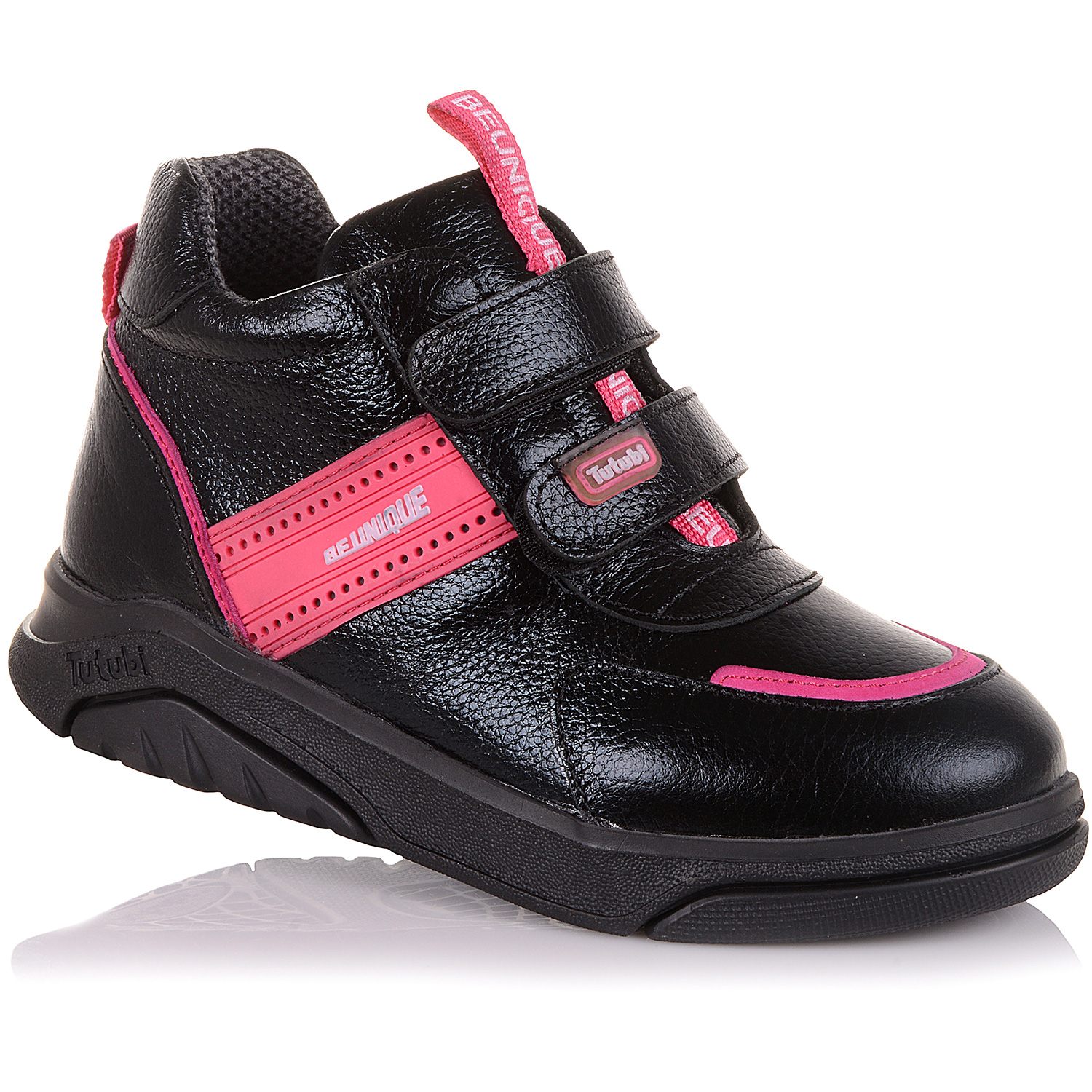 Для стильних модниць у нас новинка – тепле демісезонне взуття. Зовні черевики виконані з натуральної шкіри, внутрішньо-щільний фліс. Завдяки двом липучкам можна легко та швидко зафіксувати взуття для дітей на нозі. Спортивна підошва із термоеластопласту забезпечує гарне зчеплення з твердою поверхнею та захищає стоп від пошкоджень.