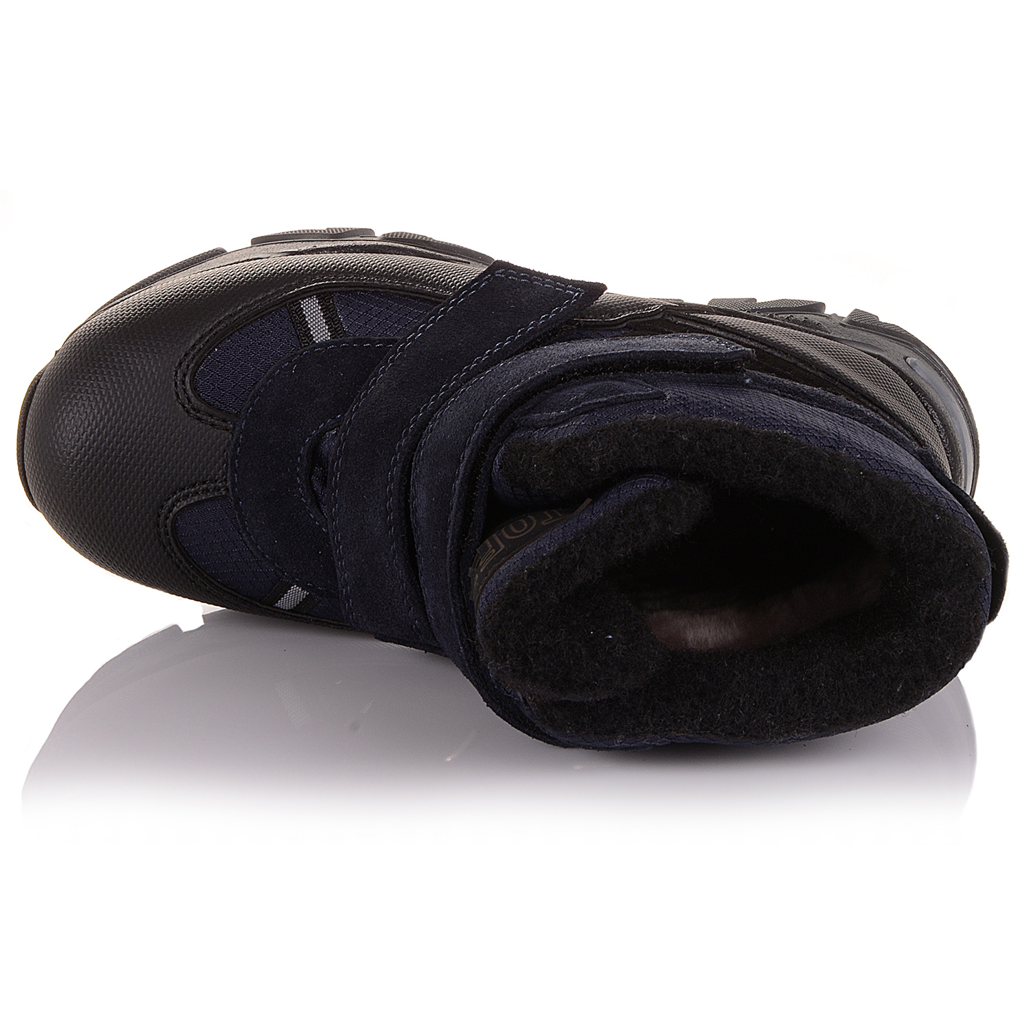 «Що мені сніг, що мені спека, що мені дощ проливний, коли у мене такі зимові черевики з цілісним язичком». Такі пісні співатимуть Ваші діти, коли взувають цю модель із текстилю та замши, а внутрішня частина взуття і устілка виконані з найтеплішого наповнювача для зимового взуття - натурального хутра, яке добре утримує тепло, тому в черевиках тепло і сухо. Підошва із захисним прорезиненим носком стійка до зносу та низьких температур.