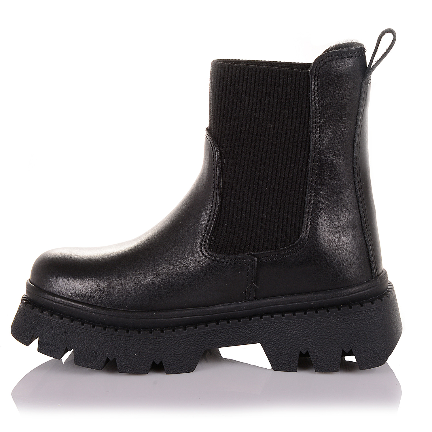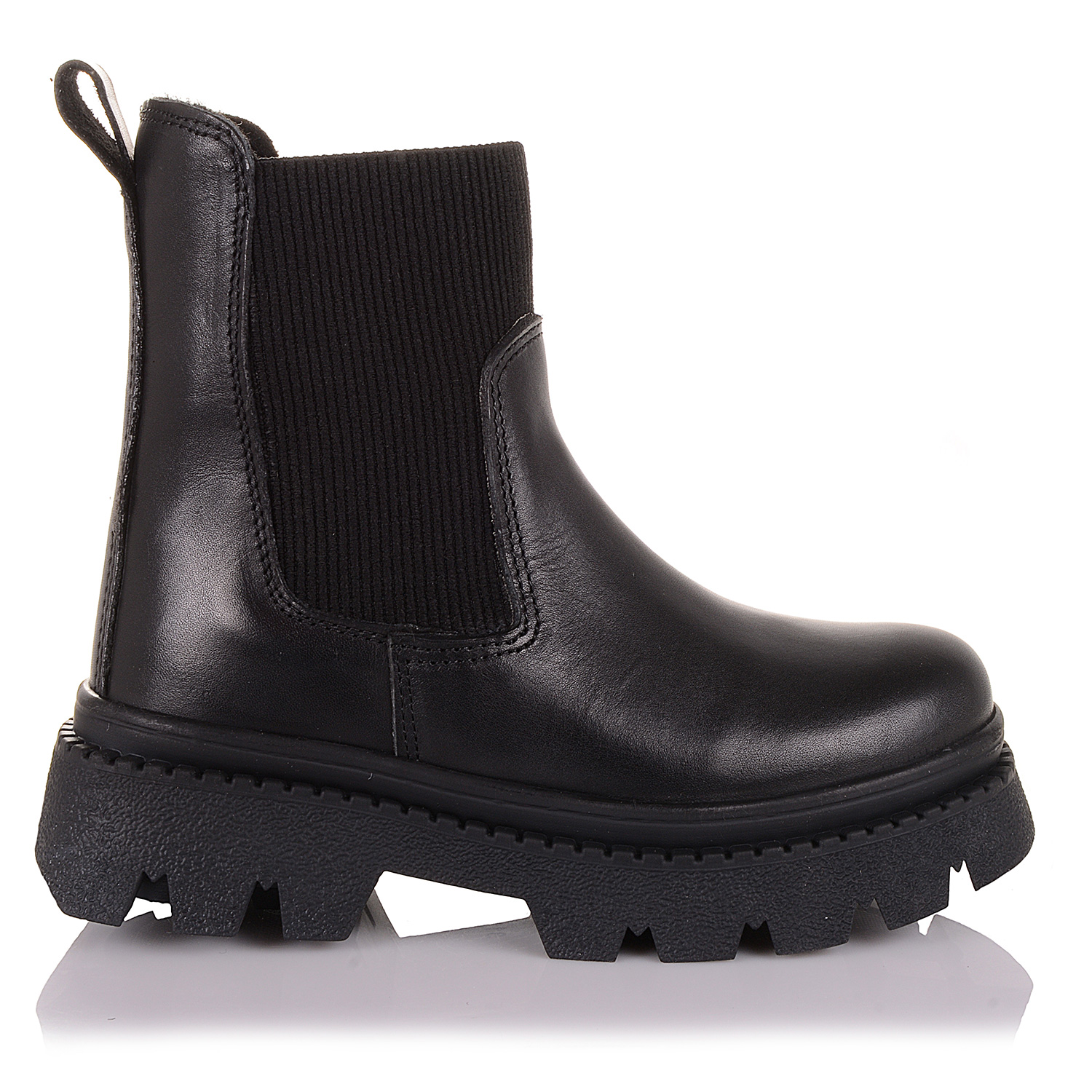 Представлена модель максимально зручна у використанні. Завдяки широкій боковій резинці черевикам не потрібна додаткова фіксація. Взуття виготовлене з натуральної шкіри.Внутрішня частина виробу і устілка вироблені з вовни. Тому в черевиках дитячим ніжкам сухо і тепло незалежно від погодних умов. Ортопедична підошва з термоеластопласту рівномірно розподіляє навантаження по всій стопі, підтримуючи її середню частину.