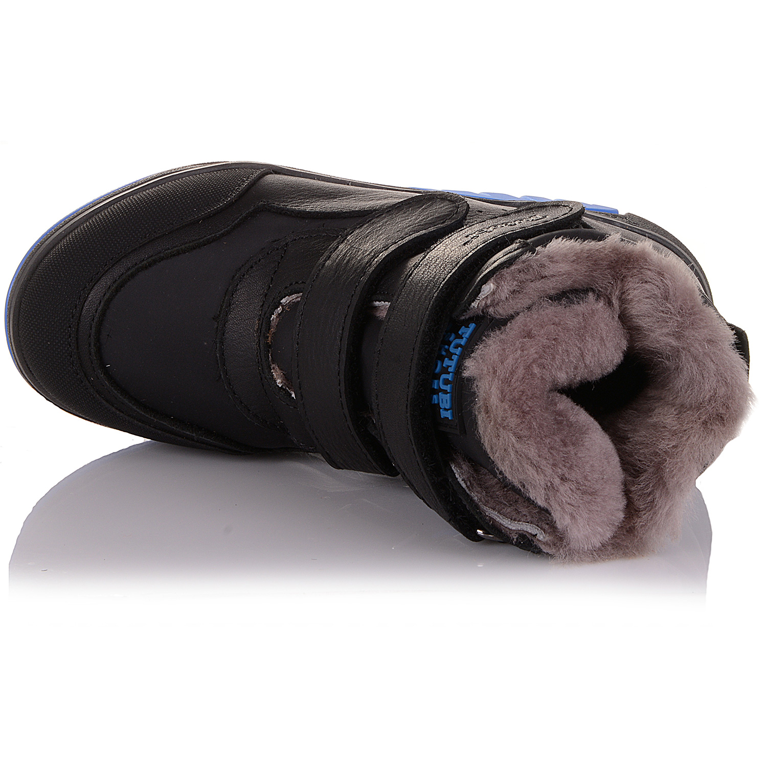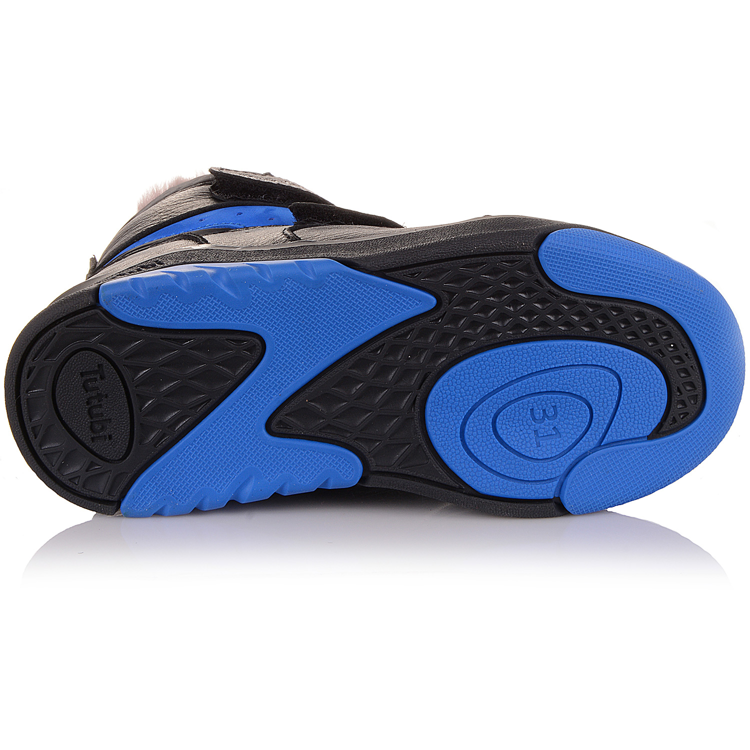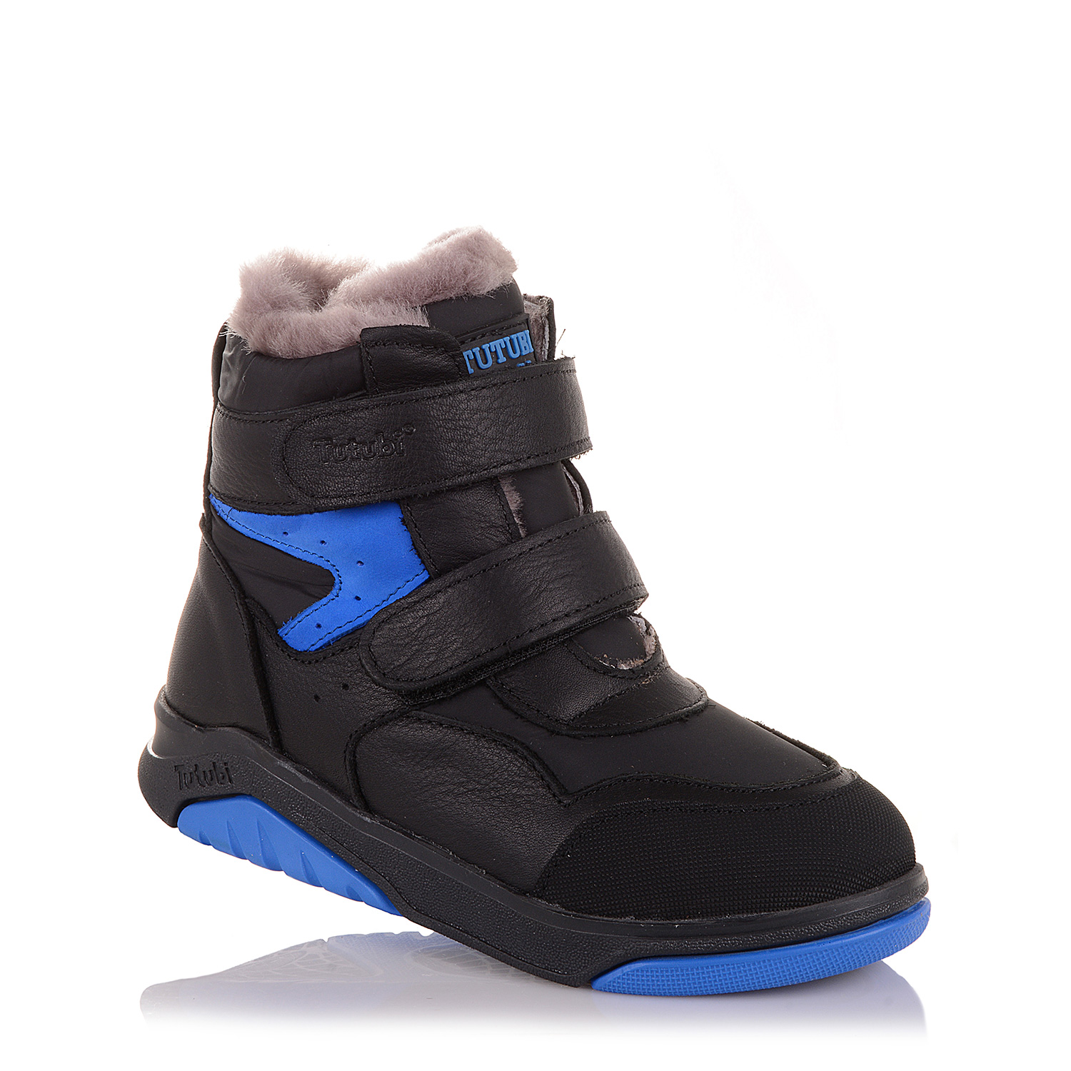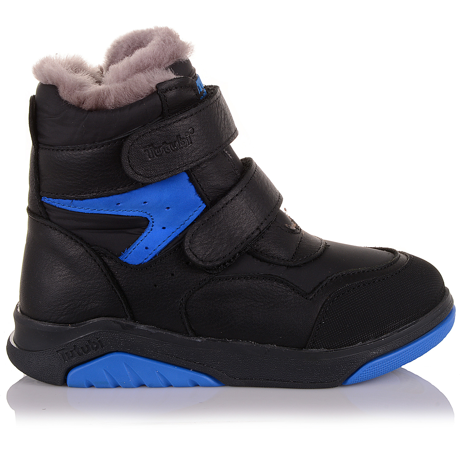 Теплі зимові черевики Tutubi виготовлені з натуральних матеріалів: натуральна шкіра та мембранний текстиль, всередині підкладка з натурального хутра . У черевиках утеплена анатомічна устілка з супінатором із натурального хутра. Модель має: жорсткий задник для правильної фіксації гомілковостопного суглоба, комфортну колодку. Зручна система фіксації - дві липучки, дозволяє швидко обувати взуття, регулювати висоту підйому ноги. Носок черевика захищений накладкою, стійкою до подряпин та пошкоджень. Теплі зимові чоботи Тутубі.
