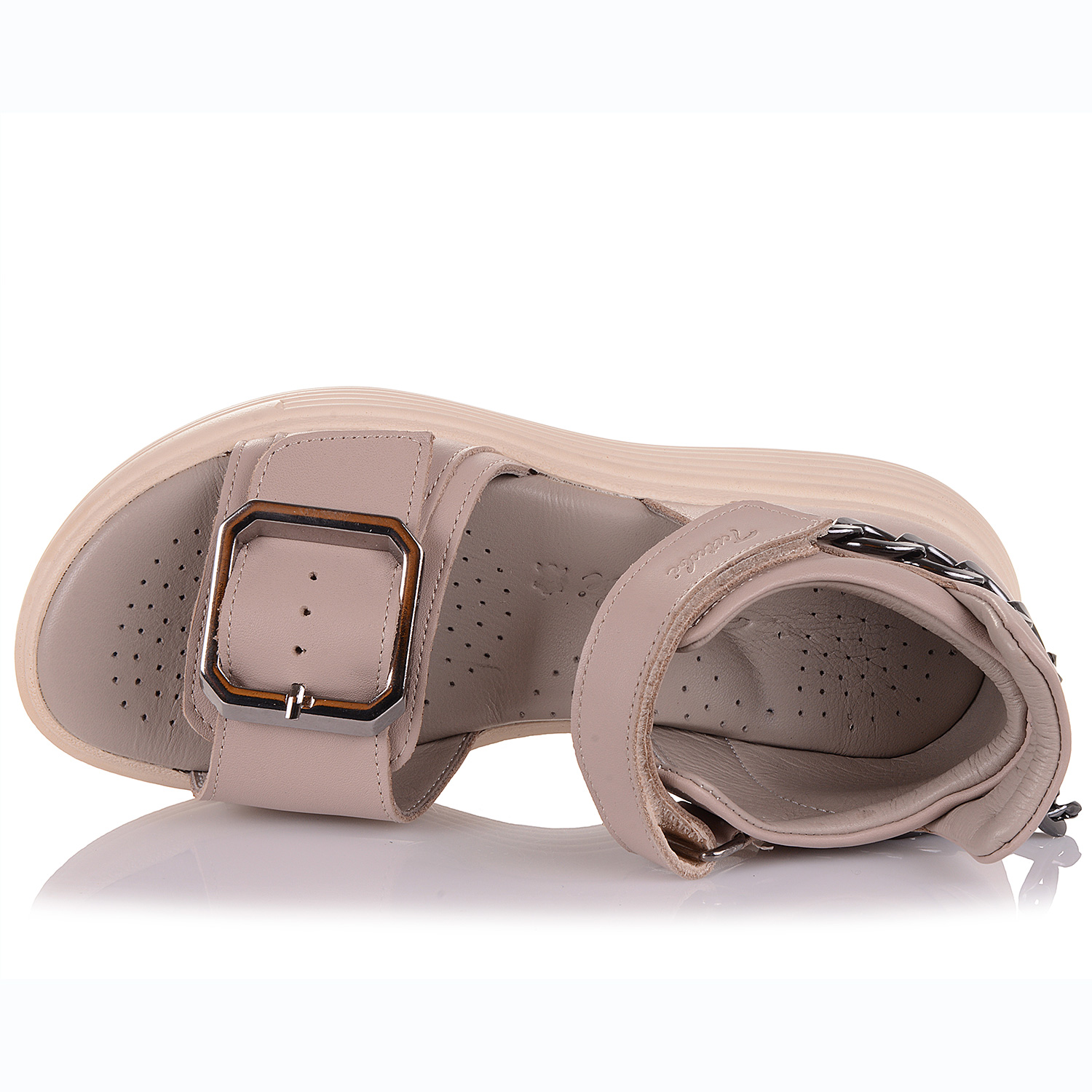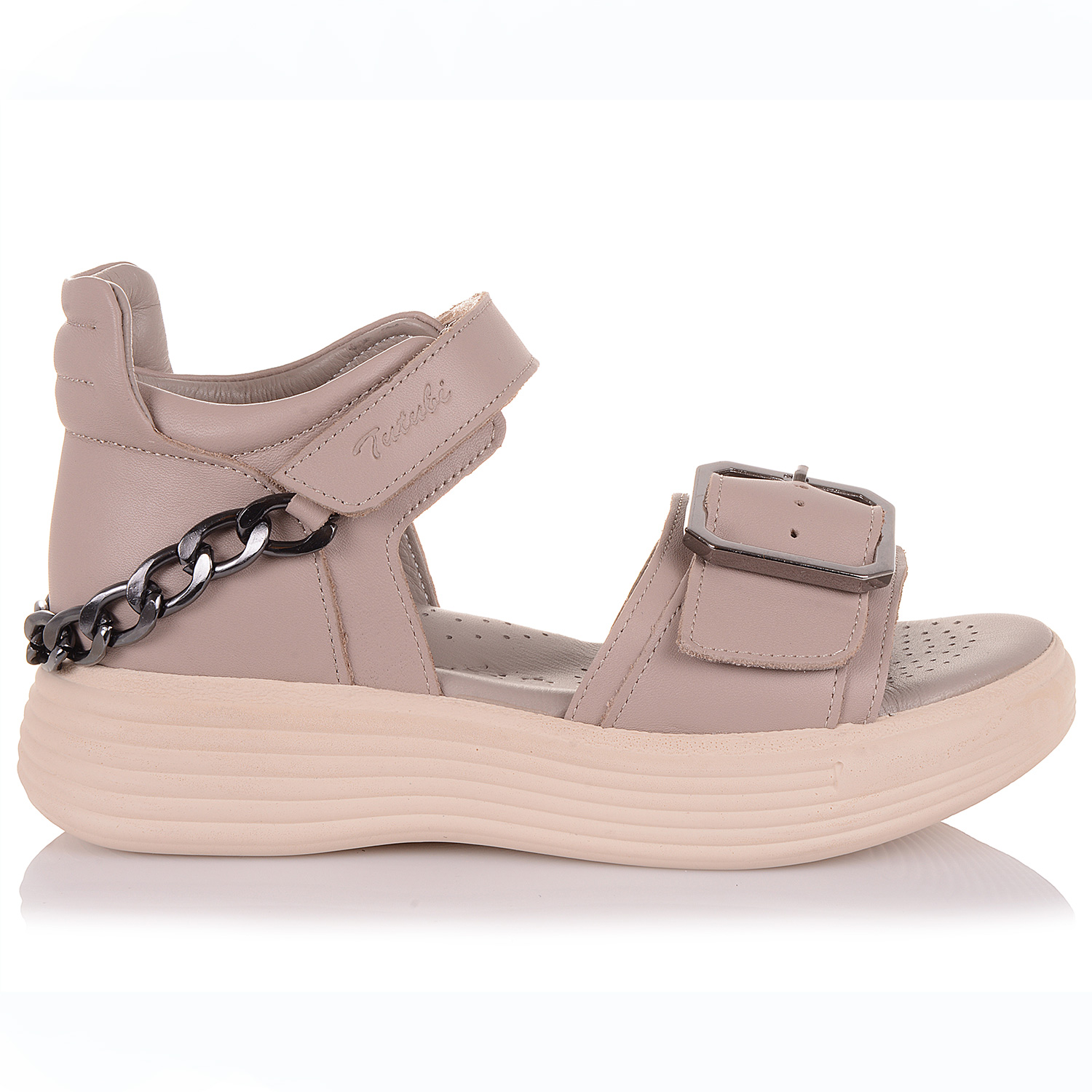 Шкіряні бежеві дитячі сандалі з ланцюжком