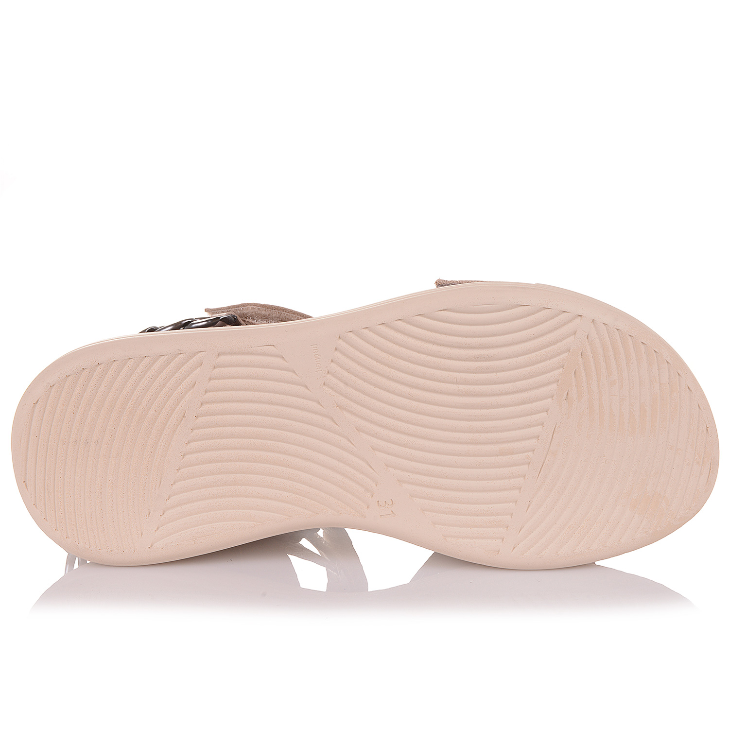 Бежеве взуття - це чудовий вибір для тих, хто втомився від чорного, ябо яскравих кольорів. Практичне, універсальне, зручне та модне взуття для дітей зроблено з натуральної шкіри з середини та ззовні. Сандалі для дівчат прикрашено ланцюжком позаду, вони мають регульований ремінець попереду та ліпучку біля гомілки. Підошва висока, проте не важка, не ковзає та не стирається. Взуття для дітей має супінатор та потовщений задник.