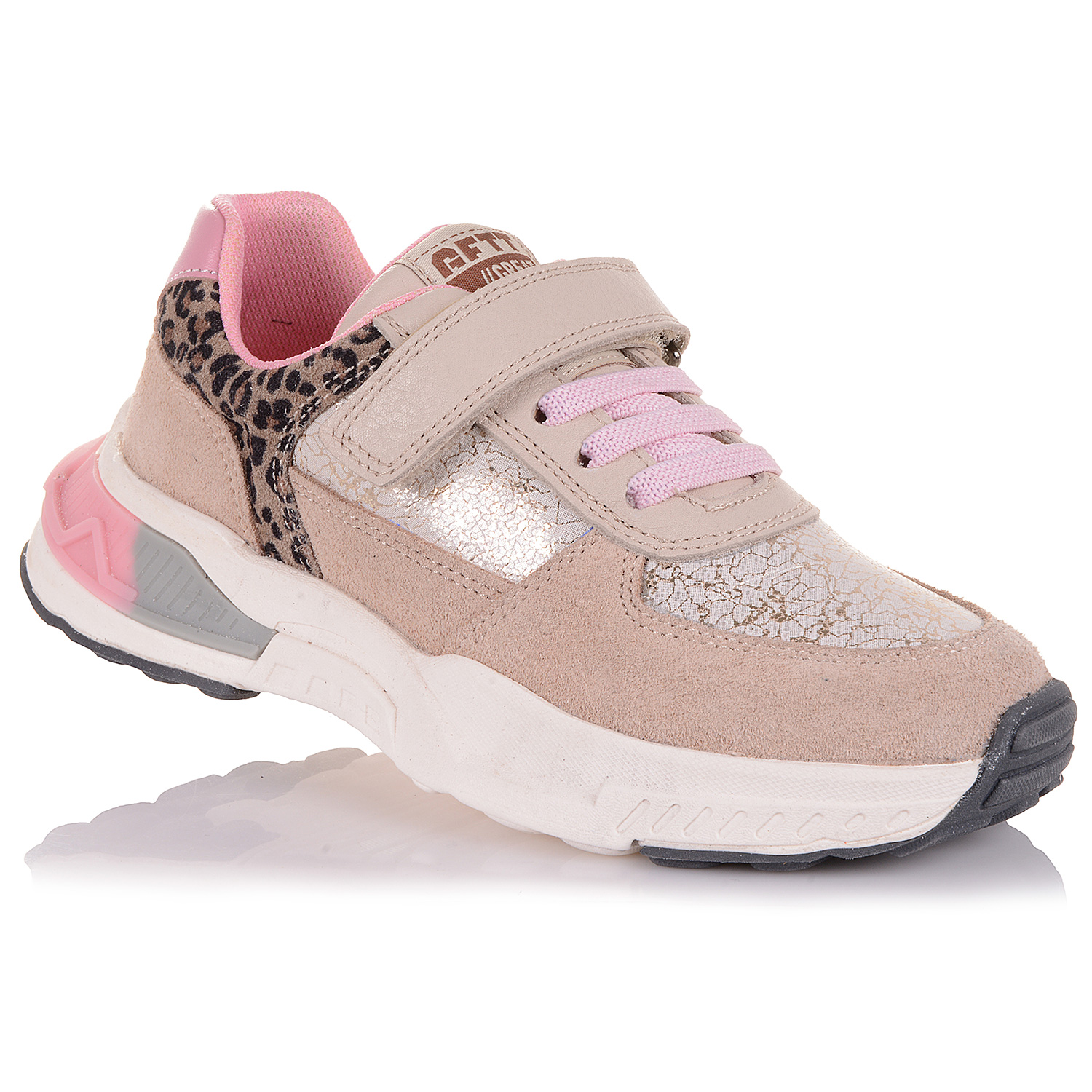 Дитяче взуття має відповідати трьом критеріям: бути зручним, міцним та гарним. Саме такою є модель кросівок для дівчат від Тірені. Взуття для дітей зроблено с натуральної шкіри та замші у дуже приємних, "дівчачих" кольорах. Середина яскраво-рожева, текстильна. Підошва легка, стильна, спортивна, з термоеластопласту, не обтяжує крок. У молелі відсутні супінатор та потовщений задник!